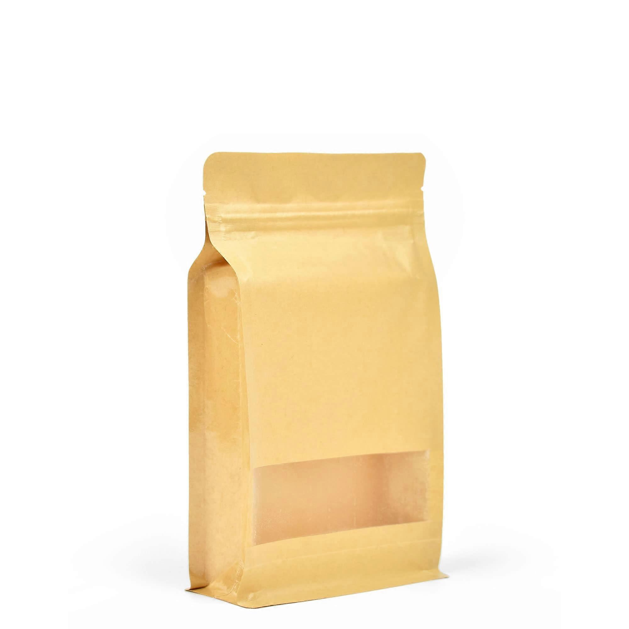 50x Kraft Flat-Bottom Window Pouch Bag | Re-Usable Food Grade Storage Self-Standing(140x240mm)