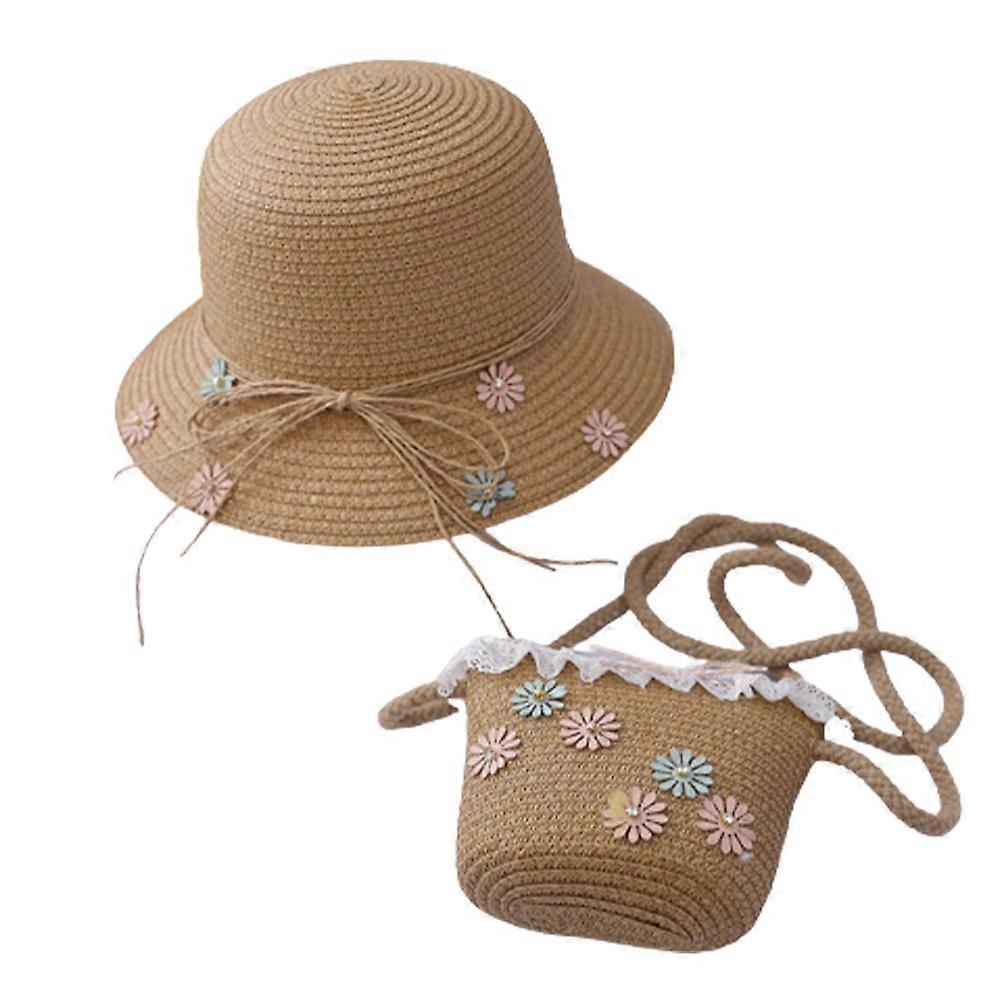 52-54cm hat circumference children's summer sunscreen sun hat beach sun hat straw hat and straw bag two-piece set