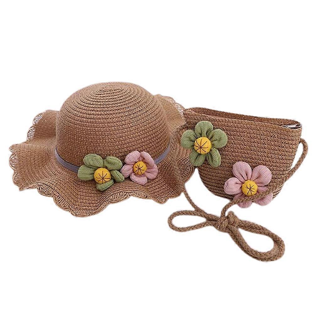 52-54cm hat circumference children's straw hat sun hat sunscreen beach hat summer sun hat basin hat and straw bag set