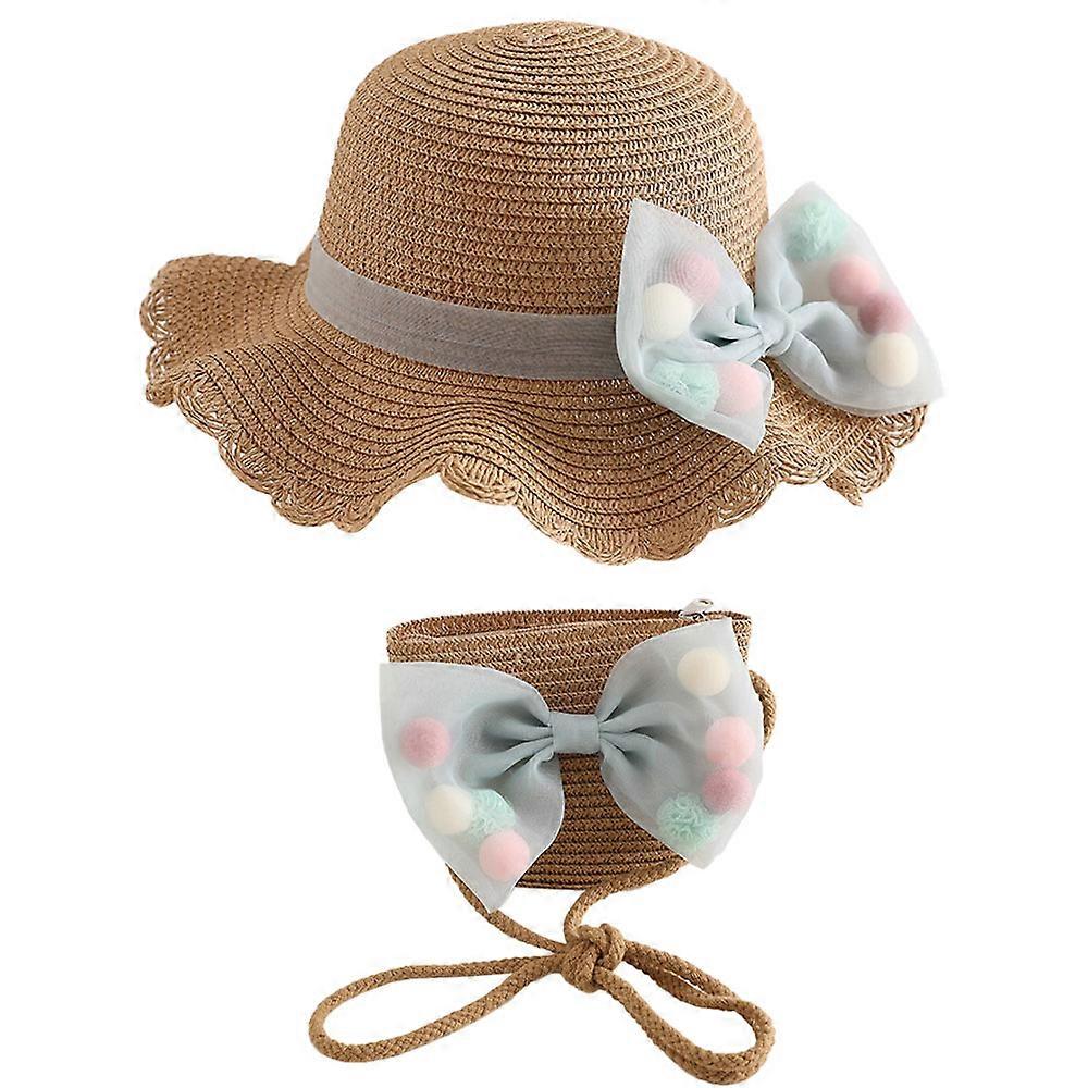 52-54cm hat circumference children's summer bow lace straw hat and straw bag set cute outing sun hat