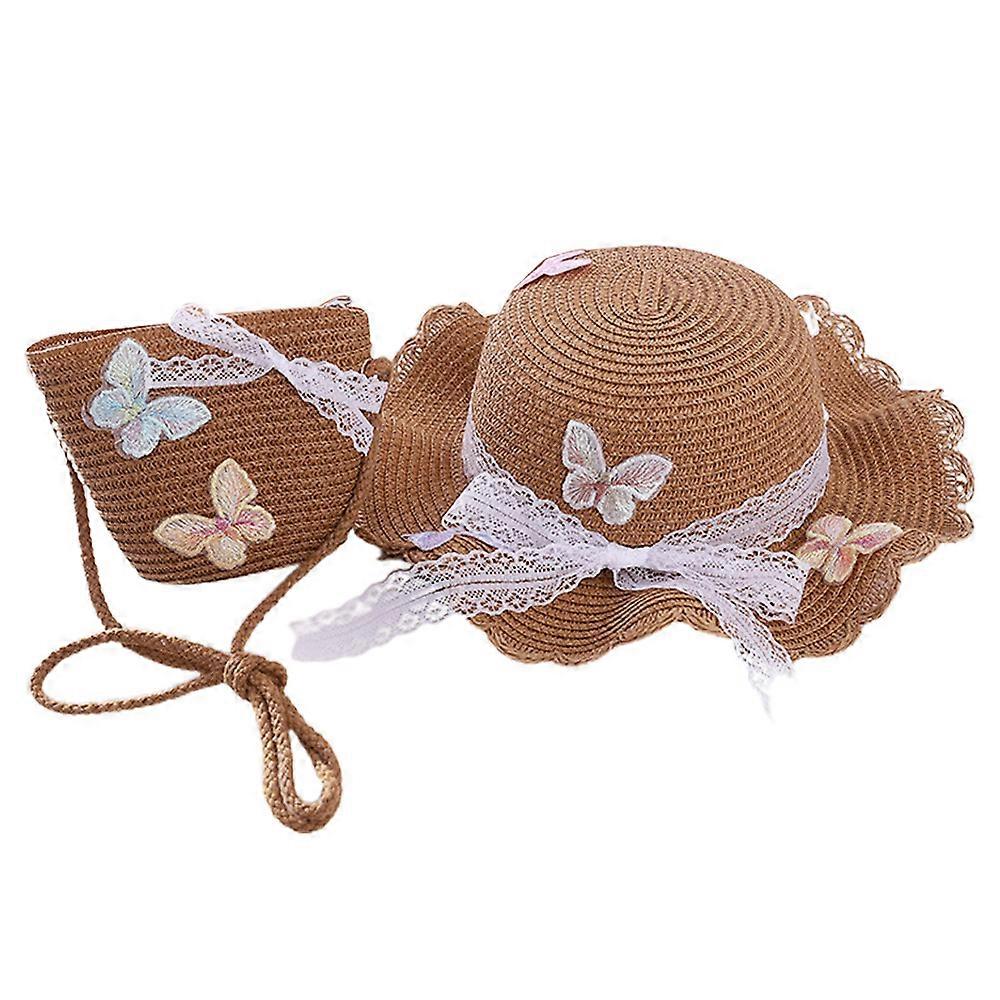 52-54cm hat circumference children's straw hat summer beach sun hat outdoor sunscreen hat and straw bag set