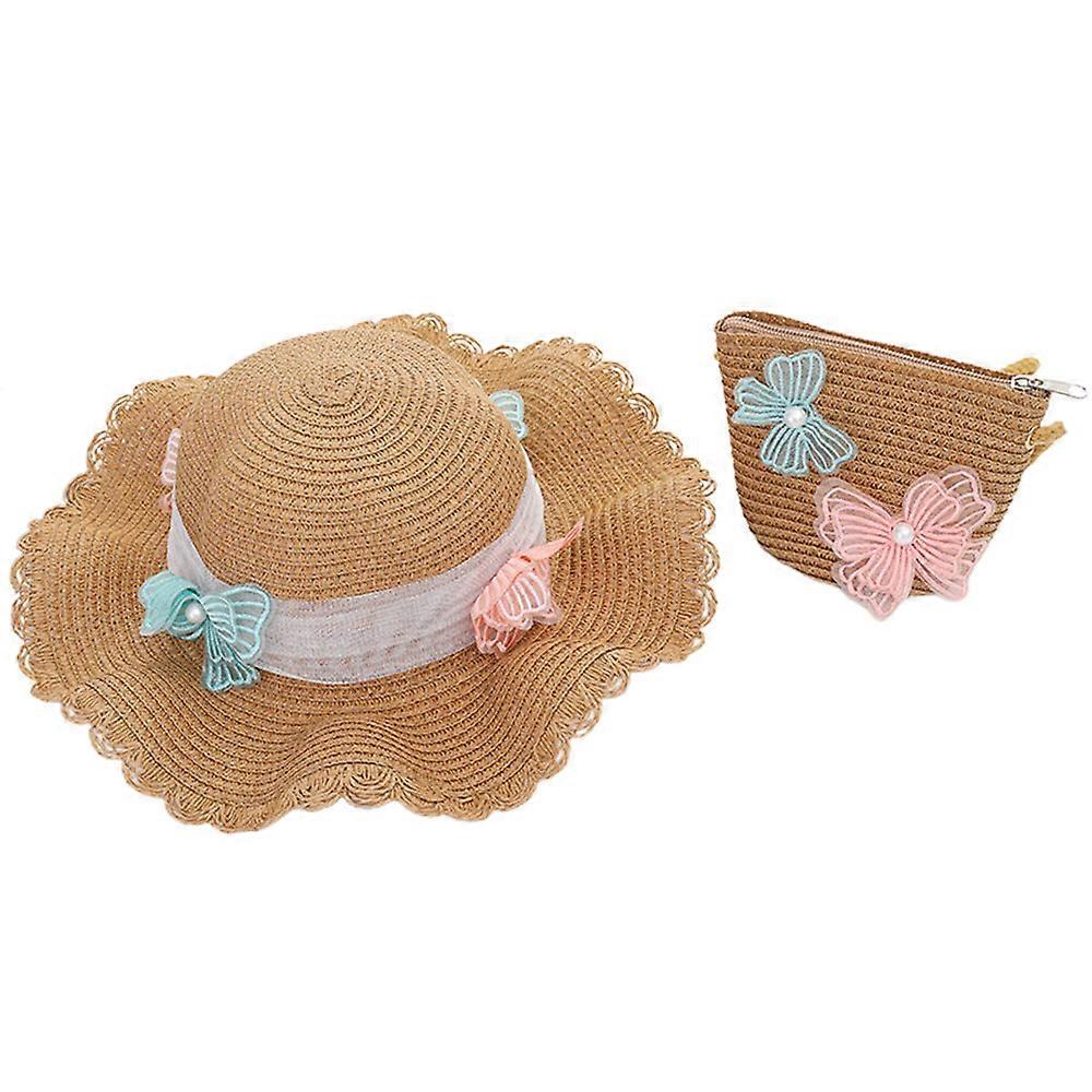 52-54cm hat circumference children's straw hat summer beach big brim sun hat butterfly sunscreen sun hat and straw bag set