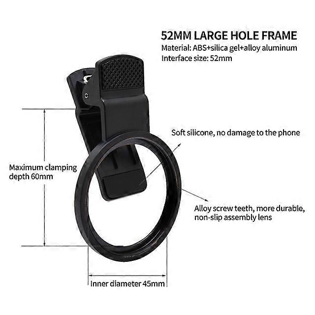 52mm Mobile Phone Camera Lens Clip Universal Aluminum Alloy Thread for All Smartphones UV CPL ND Lens Adapter Filter Ring Mount