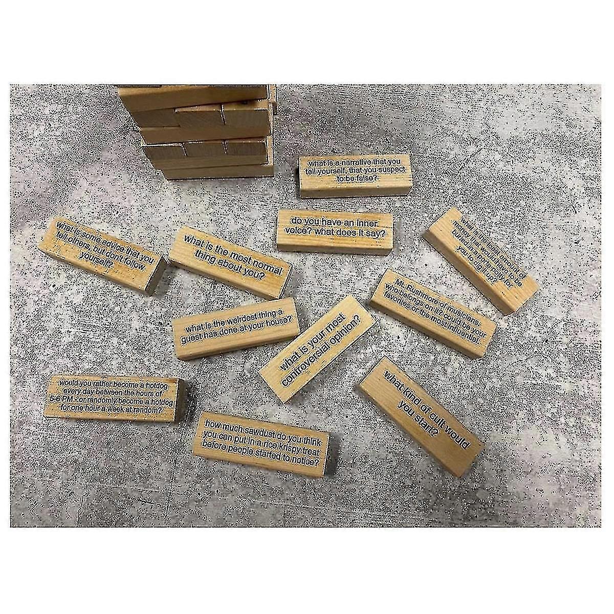 54 Pieces Questions Tumbling Tower Game, Giant Wood Stacking Game With Scoreboard, Ice Breaker Questions Tumbling[alj]
