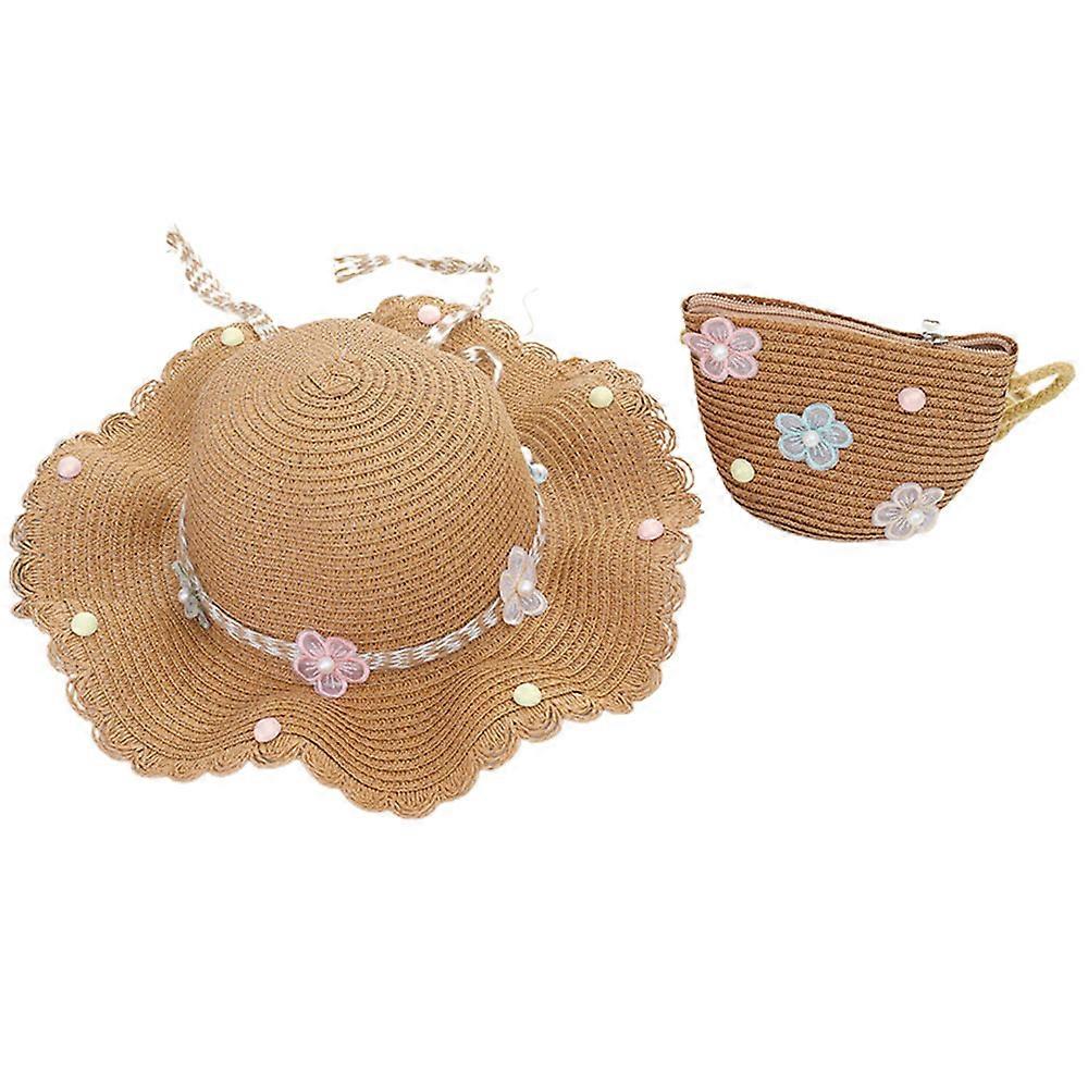 56-58cm hat circumference female summer straw hat cute flower sunscreen sun hat and straw bag set