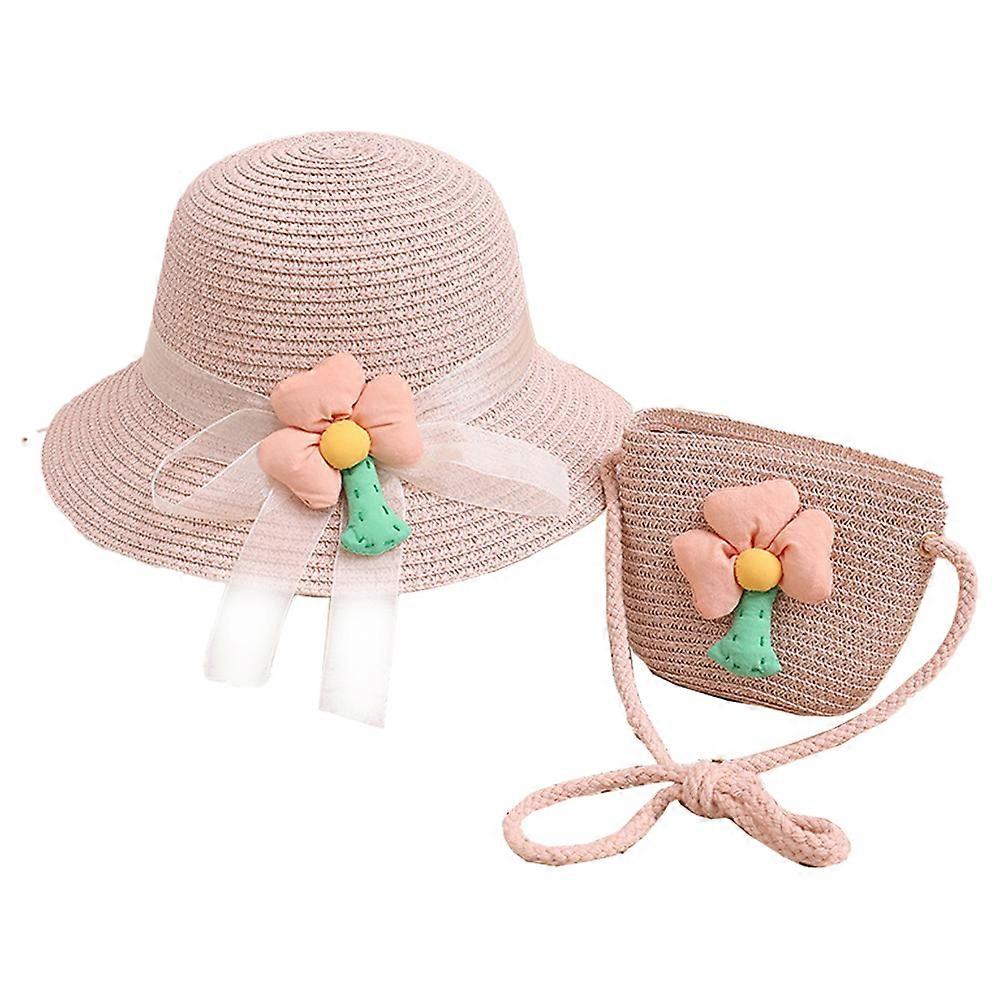 56-58cm hat circumference female sunscreen sunshade straw hat and straw bag set with windproof rope cute outing sunscreen hat