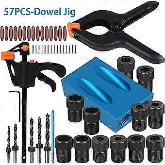 57pcs Oblique Drilling Jig, Woodworking Drilling Guide, Pocket Hole Jig Set, Drilling Guide With 15 Drill Tips 6/8/10mm Hole Adapter For Woodworking