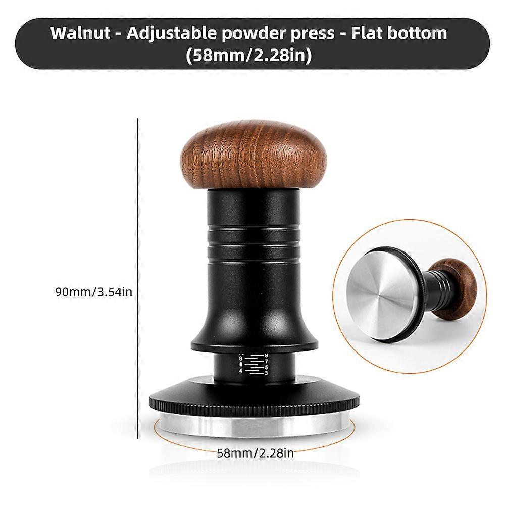 58mm Coffee Tamper 30lbs Calibrated Spring Loaded with Adjustable Depth, 304 Stainless Steel Base and Ergonomic Walnut Wood Handle for Espresso