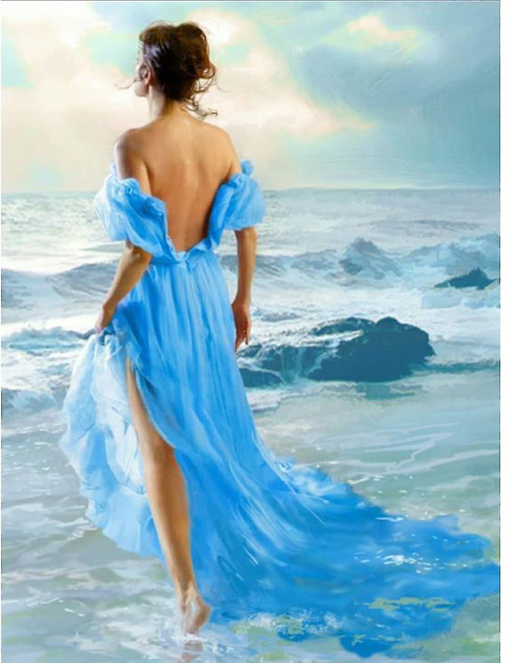 5d Full Drill Diamond Painting Blue Skirt Seaside Woman By Number Kits, Paint With Diamonds Arts Embroidery Diy Craft Set Arts Decorations