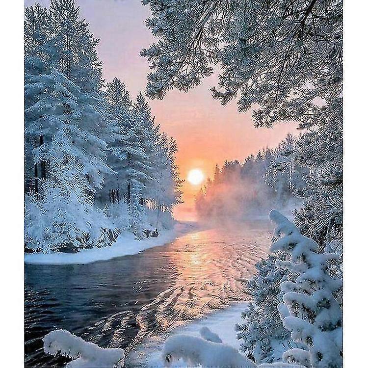 5d Diy Diamond Painting,snow Scene With Sunset,full Diamond Painting,embroidery Kits,handmade Home Decor 20*30cm