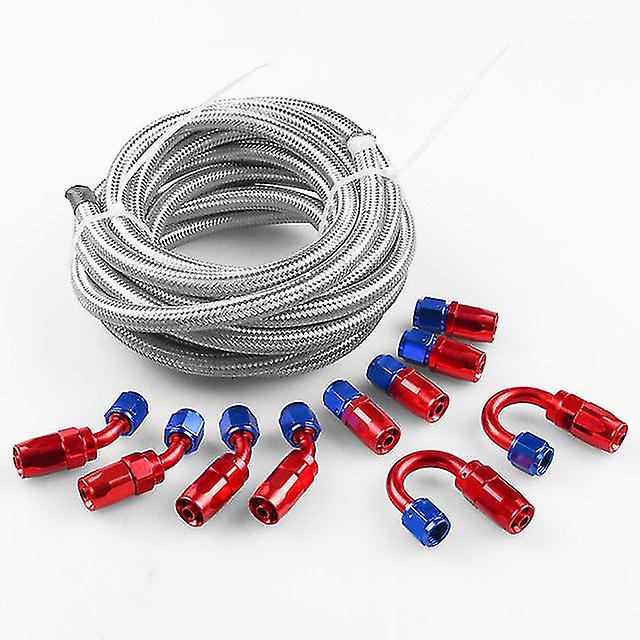 5M An8 -8an Fule Line Hose Red Swivel Fitting Stainless Steel Braided Fuel Line Hose With 10pcs Fitting Hose End Adapter Kit
