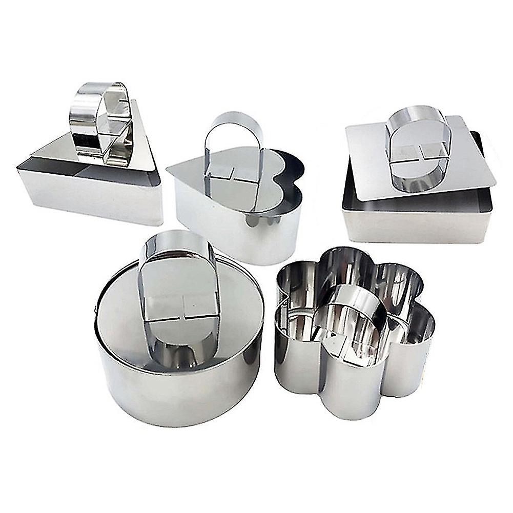 5pcs Mousse Rings Stainless Steel Cake Mold With Pusher
