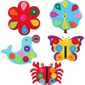 5pcs Educational Button Board for Preschool Interactive Learning Toy for Kids, Non Woven Fabric Zipper Plaything for Parent Child Activities and