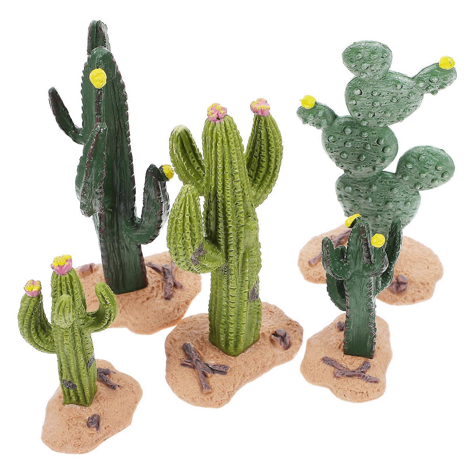 5Pcs Miniature Plastic Cactus Model for Decor Use with Assorted Colors