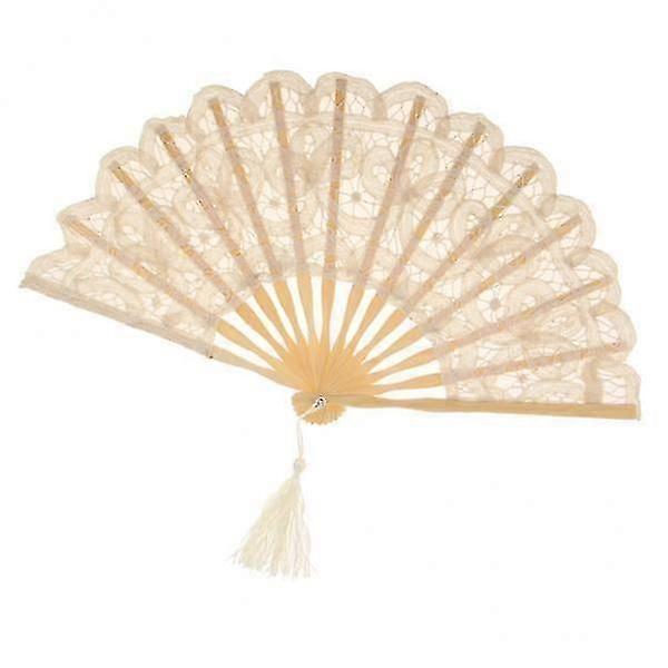 5xRetro Chinese Style Lace Folding Hand Held Dance Fan Wedding Party Fan Beige