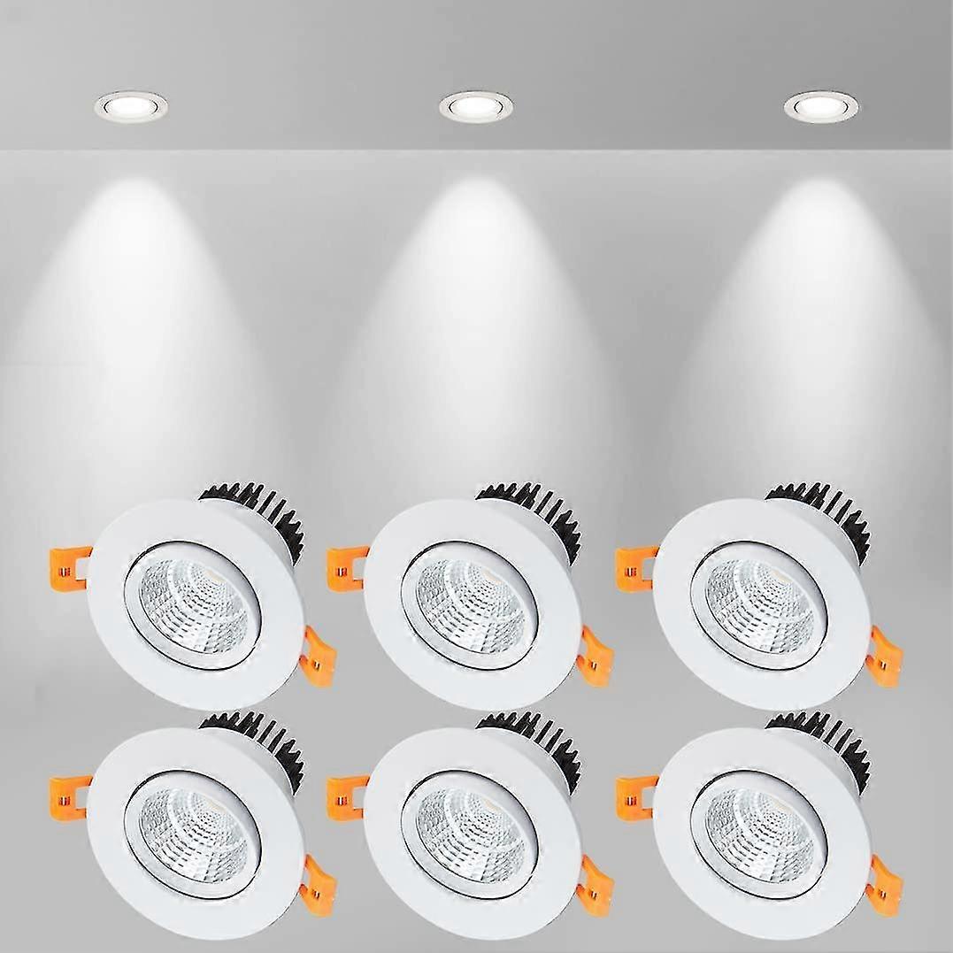 6 X Led Recessed Spotlights, 5w Cob Recessed Ceiling Light, Cool White 6000k, 500lm, Ac 220-240v, Ra90, Beam Angle 24, Ip44, For Bathroom, Kitchen, Li