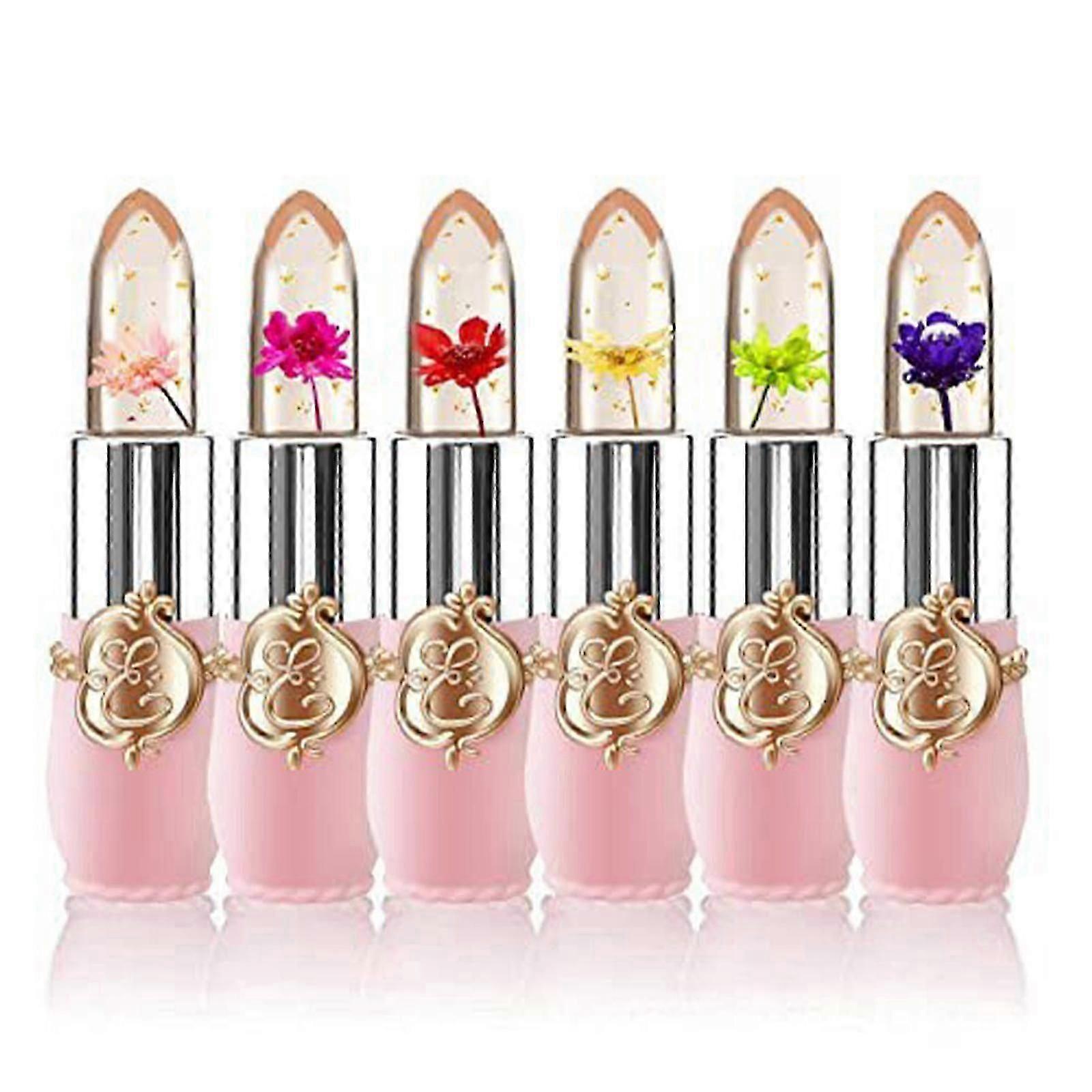 6 Crystal Flower Jelly Lipstick, Long Lasting Nutritious Lip Balm, Lips Moisturizer Magic Temperature Color Change Lip Gloss