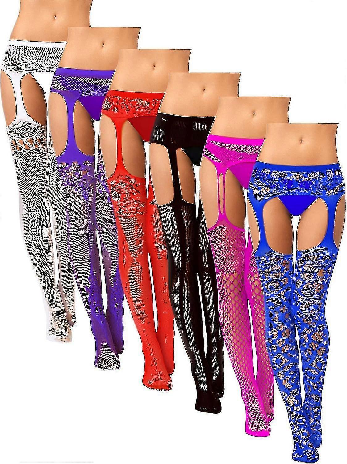 6 Pairs Women Fishnet Thigh-high Stockings Tights Suspender Pantyhose Stockings For Women Girls
