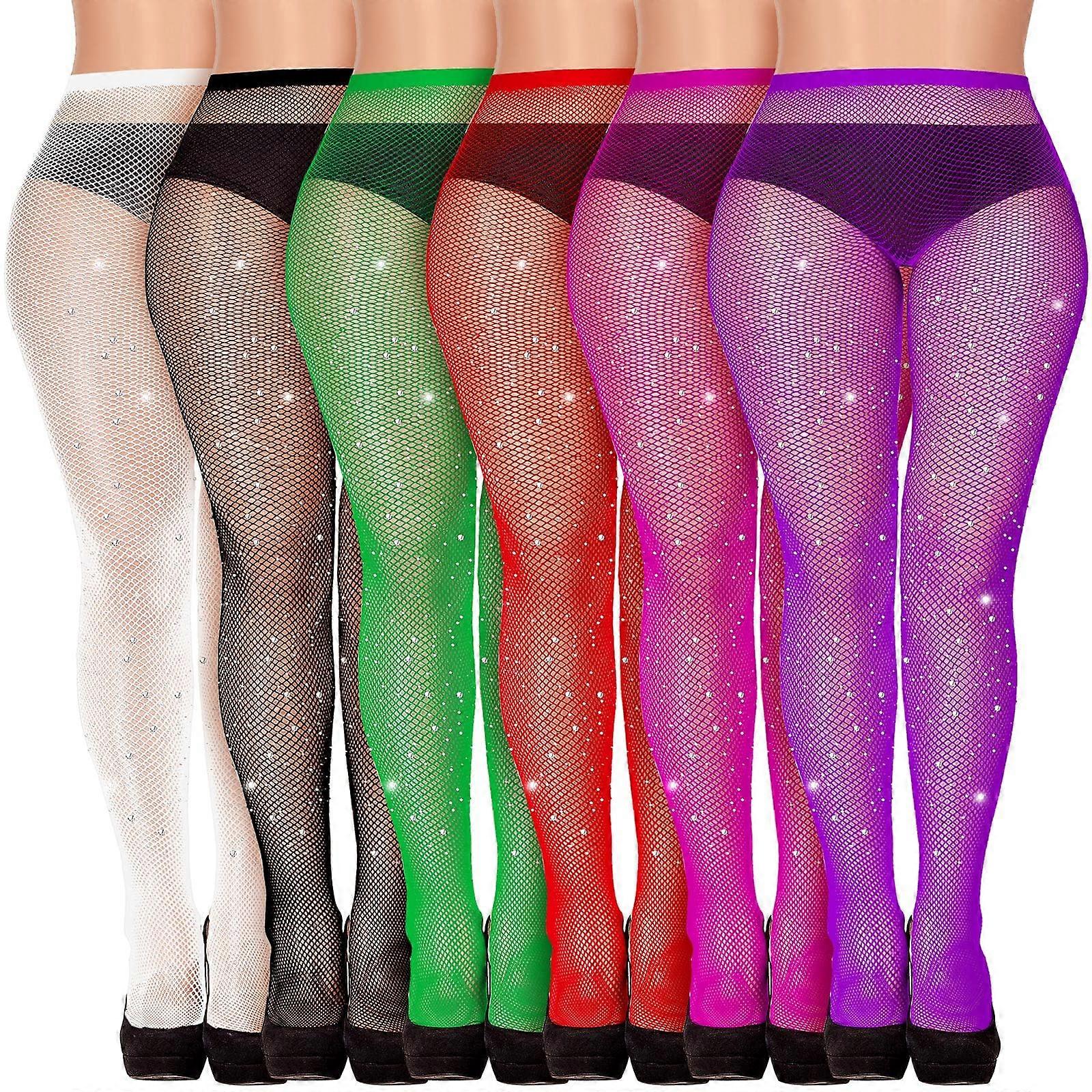 6 Pairs Rhinestone Fishnet Stockings Glitter Fishnet Tights Pantyhose High Waist Mesh Stockings for Women Girls