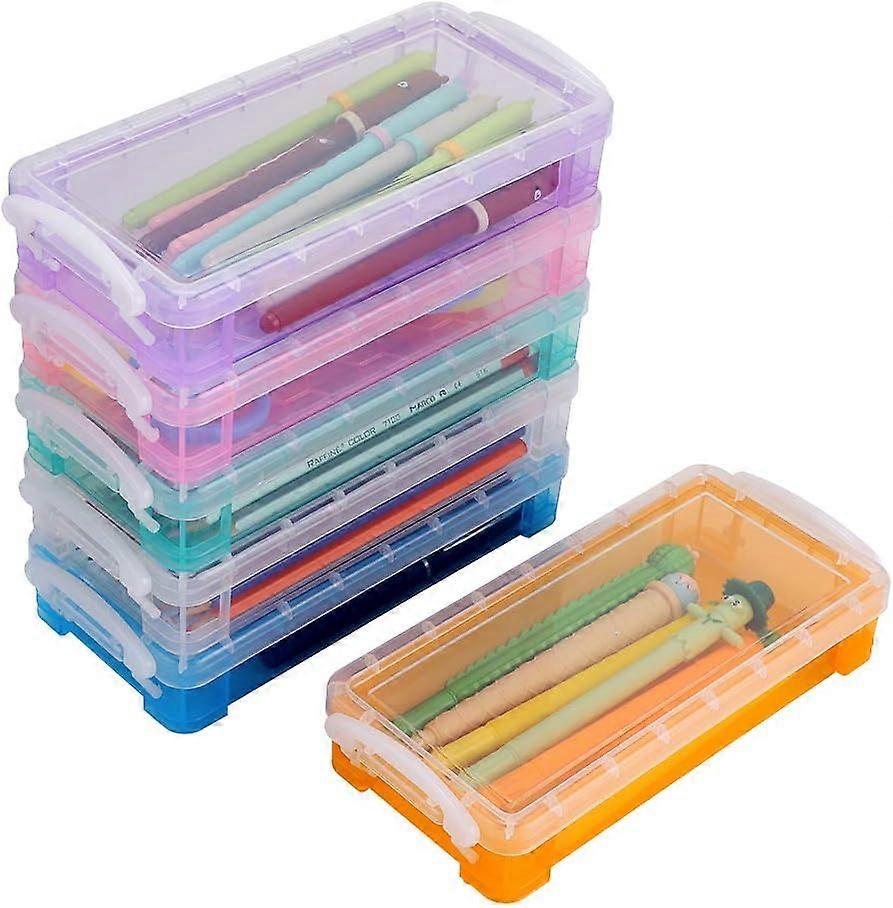 6 Colors Stackable Translucent Pencil Boxes - Multifunctional Clear Plastic Storage Box Holder Organizer Office Home Container, Rose Red, Blue, Green,