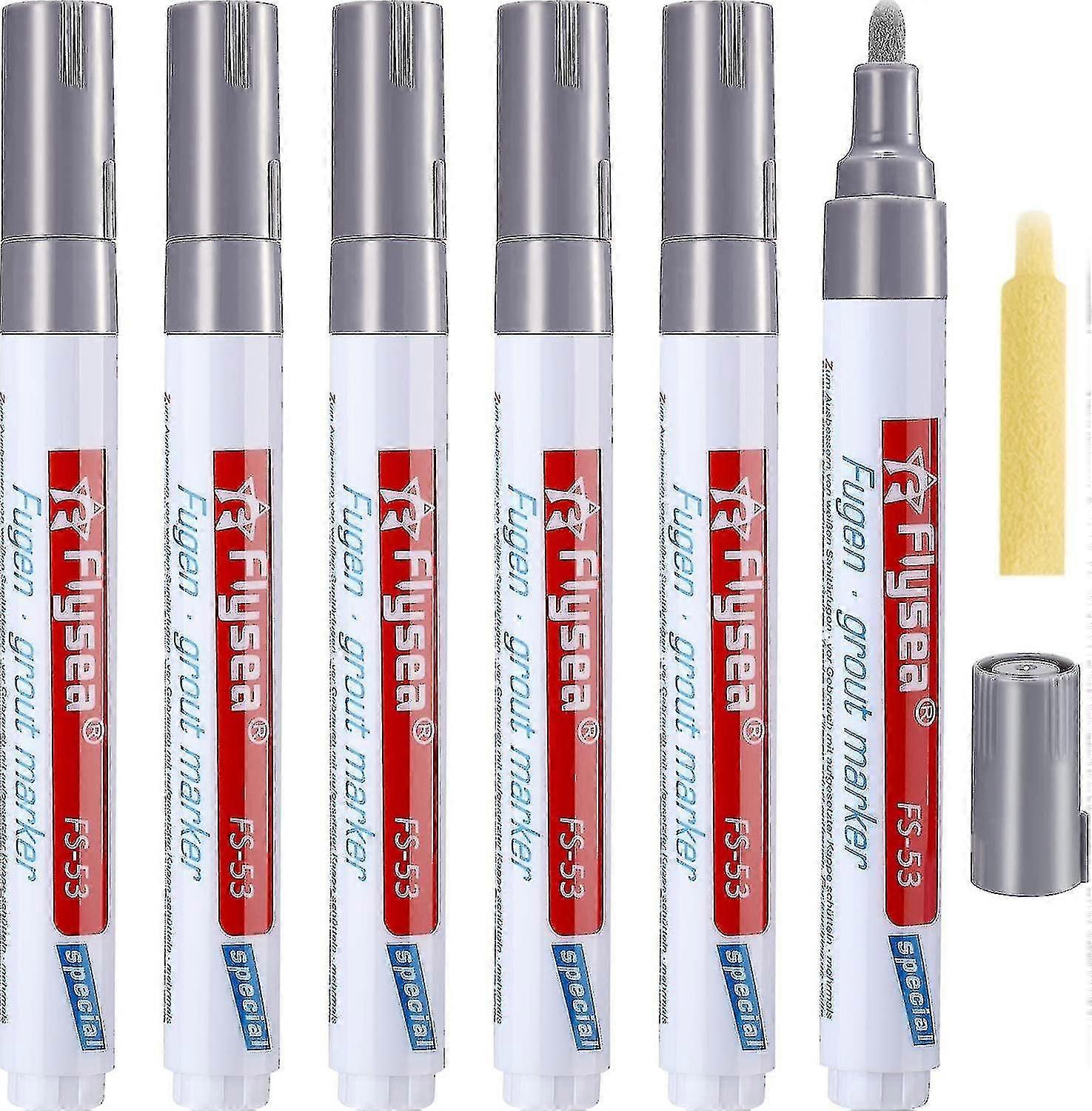 6 Tile Grout Pen Wall Grout Restorer Repair Marker Grout Filler Pen For Bathroom Floor Wall Tile Restoration (light Grey)