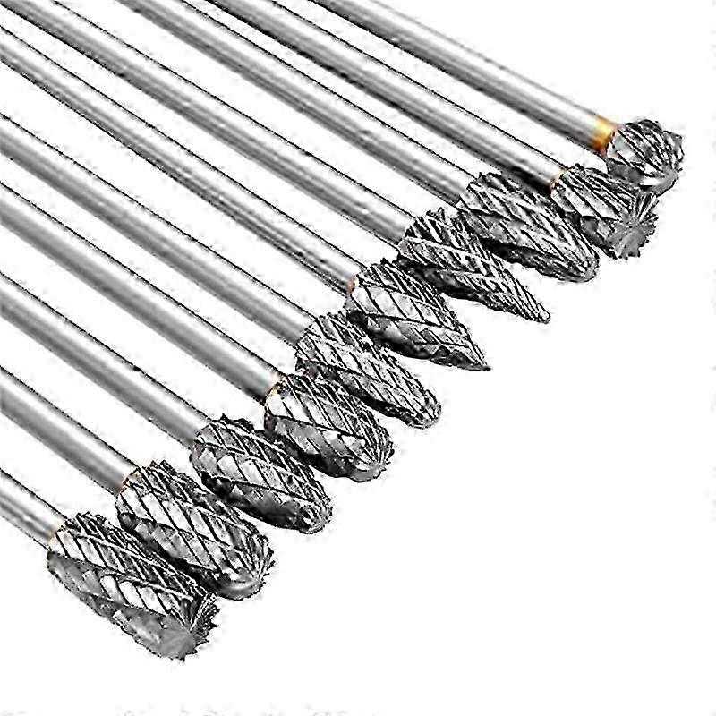6-Inch 10PCS Carbide Burr Set, Double Cut Tungsten 3mm (1/8Inch) Shank Carbide Rotary Burr Rotary Fi