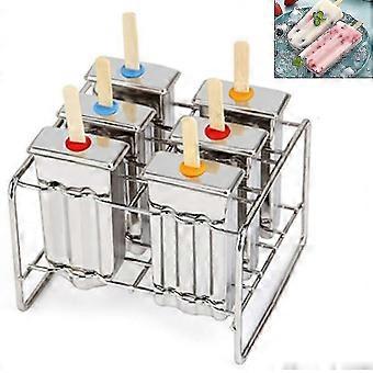 6-تجويف الفولاذ المقاوم للصدأ الآيس كريم العفن & علبة مكعبات الثلج ، قالب الحلوى محلي الصنع القابل لإعادة الاستخدام DIY للفريزر