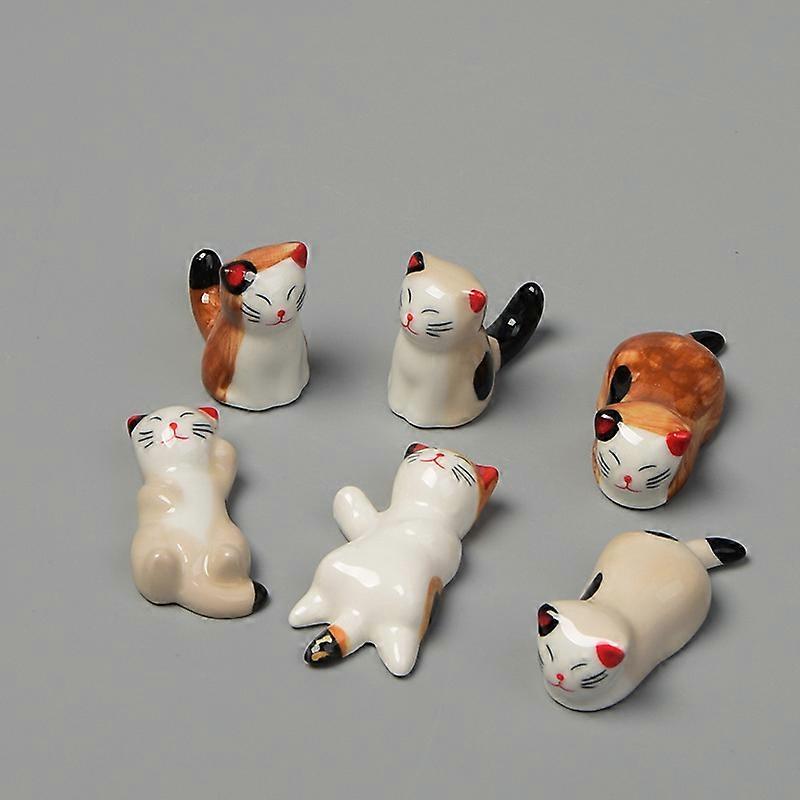 6 Pack Cat Chopsticks Rest Set, Porcelain Cute Lucky Cat Ceramic Chopsticks Holder Rack For Dinner Fork Spoon Knife Tableware, Home Kitchen Gift
