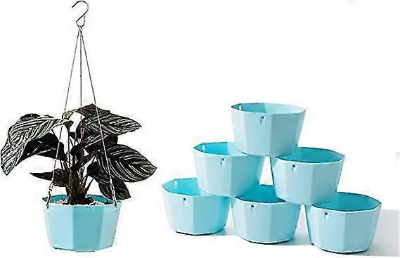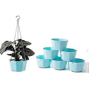 6 Pack 6 Inch Hanging Plant Pot Self Watering Hanging Plas Indoor Hanging Flower Pots Outdoor Hanging Pot Basket, Plant Hanger 3hooks, Draina