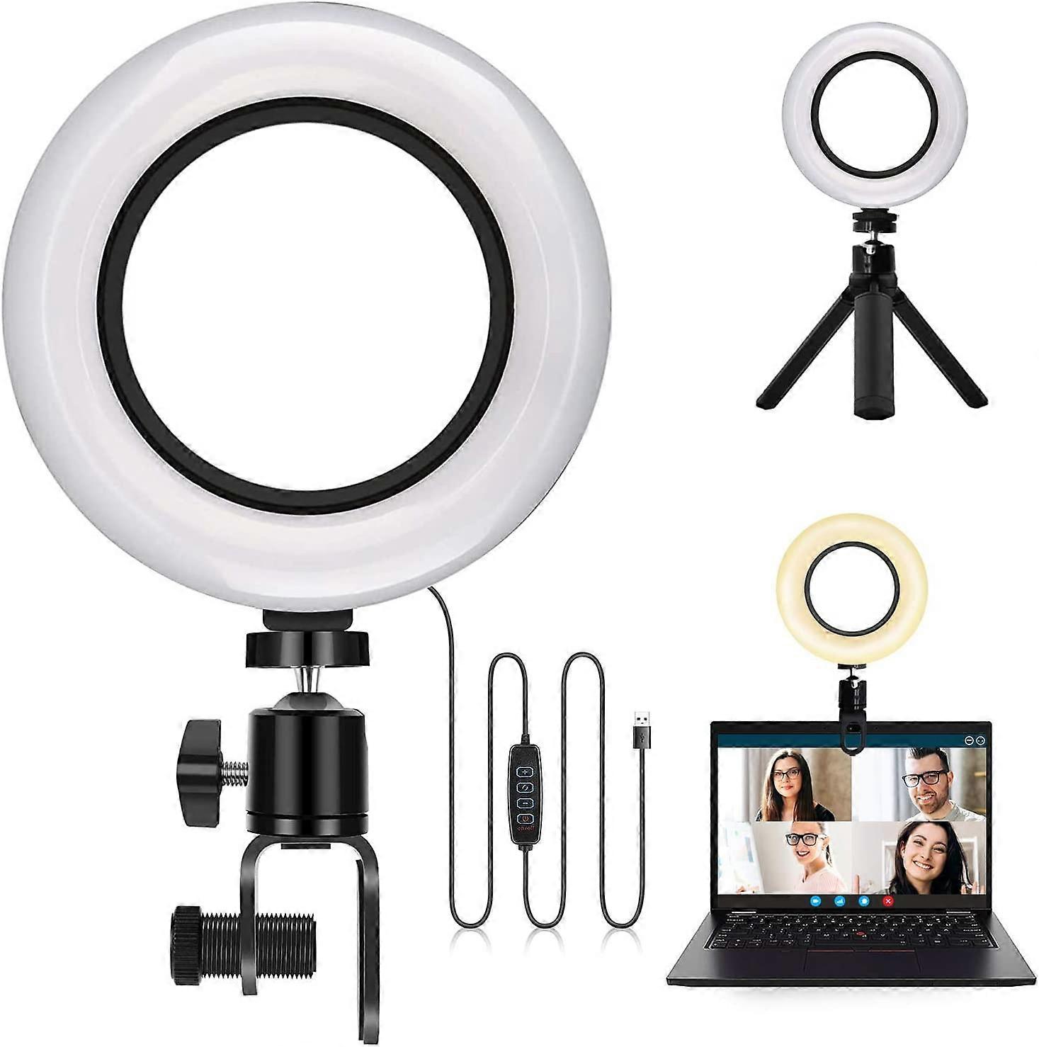 6" Selfie LED Ring Light with Clamp Mount and Tripod Stand, for Live Stream/Video Recording/Zoom Calls