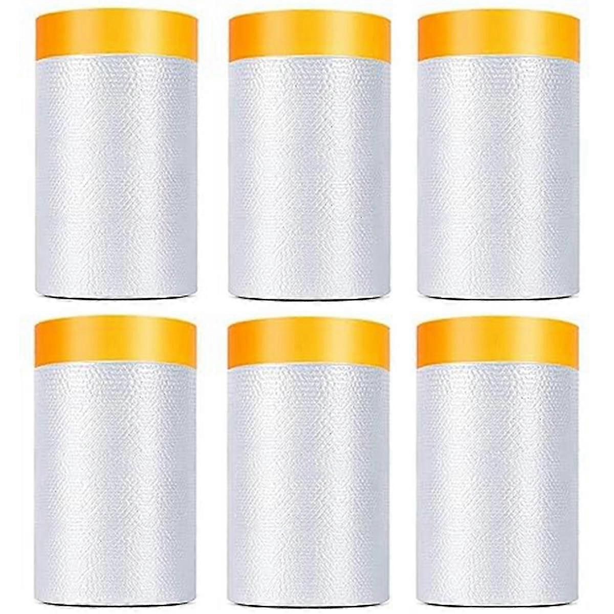 6 Pack Tape And Drape, 1.8x62.3 Ft Pre-taped Masking Film For Auto Painting Covering, Plastic Pre-a