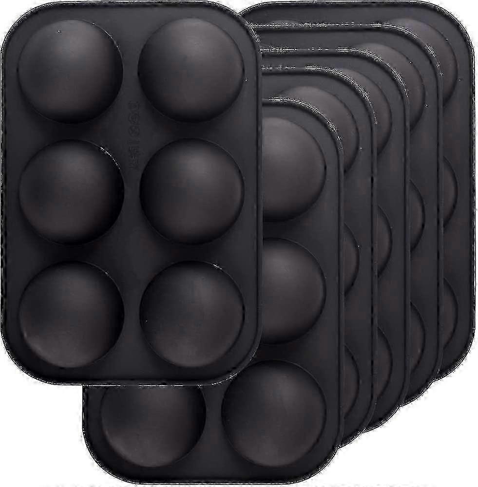6 Pack Silicone Molds 6 Holes, 6 Cavity Half Spheres For Making Chocolate Bombs, Cakes, Jelly, Pudding, Domed Mousse - Black