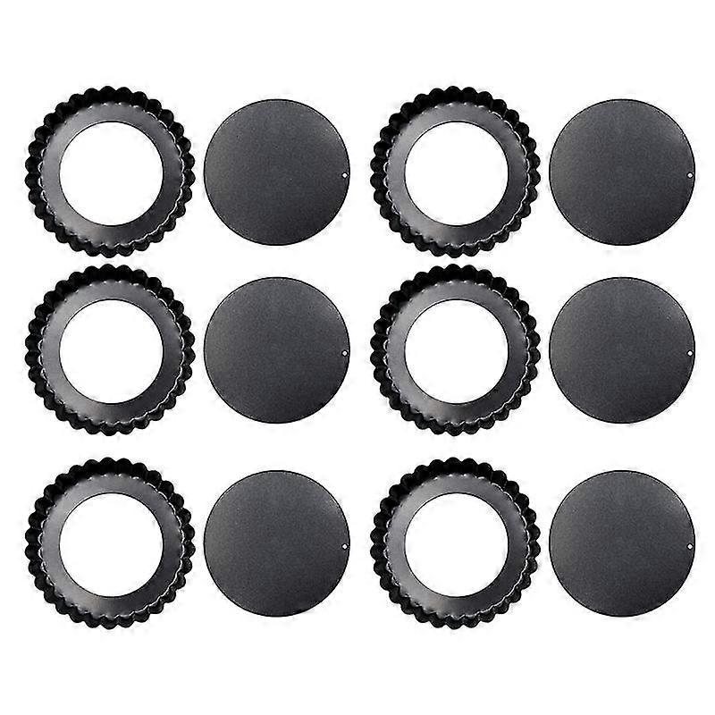 6-Pack Nonstick Tart Pans with Removable Bottom, Carbon Steel Quiche Baking Pans for Kitchen Use