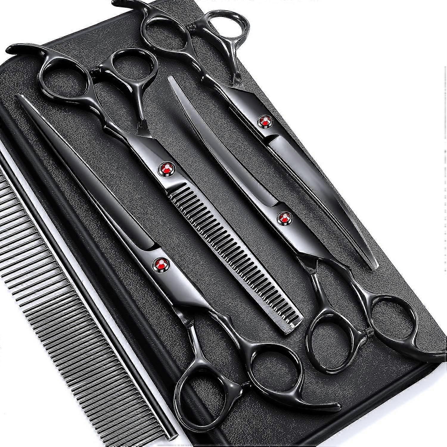 6 In 1 Professional Dog Grooming Scissors Kit,7.0in Stainless Steel , Straight & Thinning & Curved Shears & Comb Set For Pet Grooming