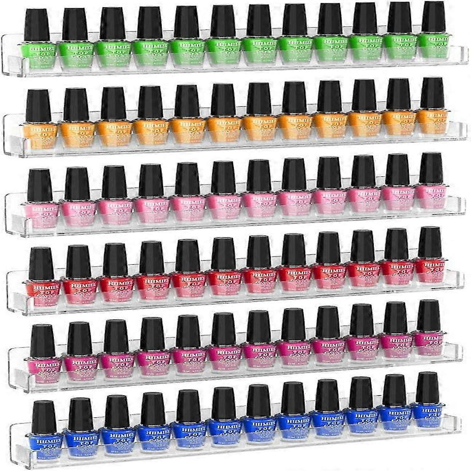 6pcs Acrylic Wall Mounted Nail Polish Display Stand Transparent Storage Box