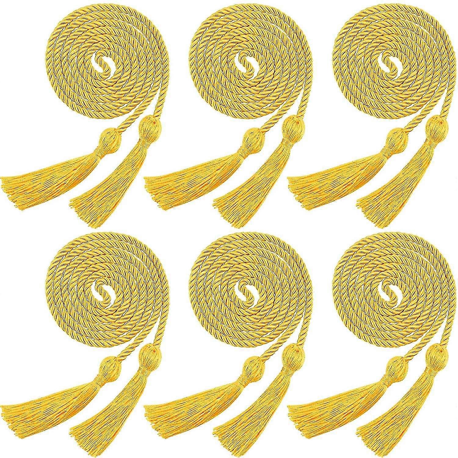 Packing List: You will receive 6 beautiful Graduation Ceremony Lanyards in abundant quantities for you to use for graduation or decoration, you can also share with your classmates and friends, Happy Graduation.PREMIUM MATERIAL: All graduation ropes are made of high quality polyester fabric, they are smooth to the touch, easy to clean, they look like new after washing, they are a good choice for graduation decoration.Exquisite Design: Each graduate rope is designed with a knot and tassel, the overall design is exquisite and elegant, with bright colors, suitable for graduation photos, graduation ceremonies, graduation parties and other graduation ceremony events.Appropriate size: The total length of each cable is about 1.7m/66.9inch, the length of the cord is 1.5m/59inch, the proper length is suitable for most people to wear, no need to worry about the cord being too long or too short.PERFECT GIFT: Gift to your kids or friends or loved ones during graduation season, as decoration or as a meaningful keepsake, they will love it.There may be a risk of entanglement, please keep from children.Colour: goldMaterial: polyesterPackage Contents:6 * cordsOnly the above package content, other products are not included.Note: Light and different displays may cause the color of the item in the picture a little different from the real thing. The measurement allowed error is +/- 1-3cm.