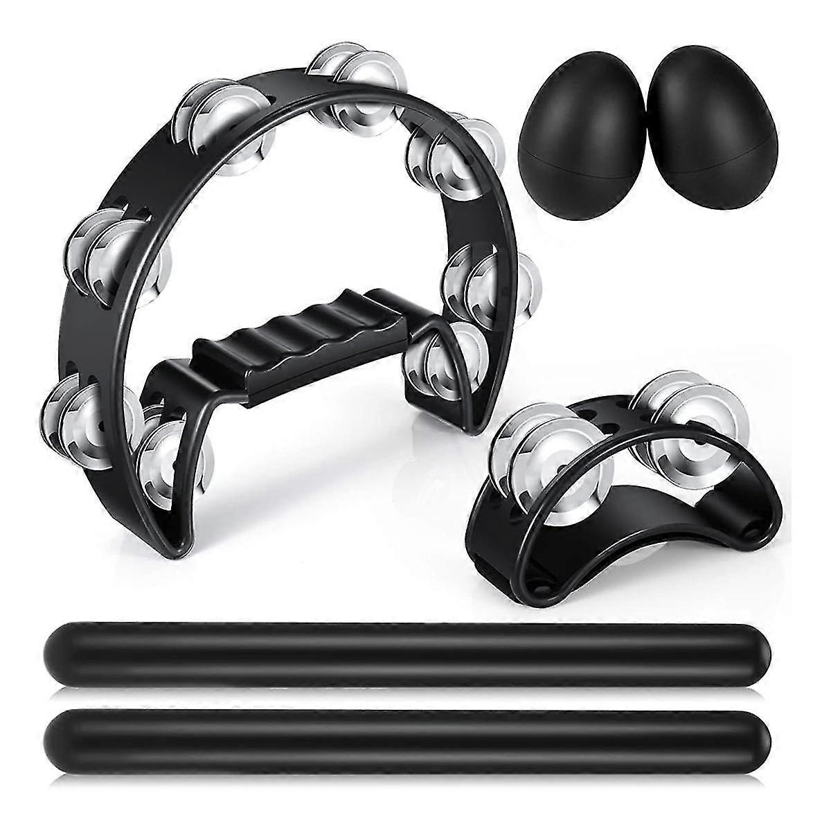 6 Pcs Tambourines, Hand Held Half Moon Tambourine With Rhythm Sticks Egg Shakers Musical Percussion Instrument Set