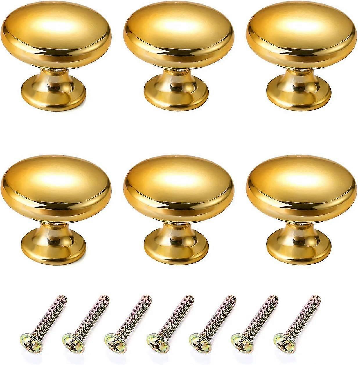 6 Pieces Gold Round Dresser Knobs Drawer Knob Kit, Shiny Chrome Zinc Alloy Mushroom Type Single Hole Cabinet Knobs Cabinet Pulls Knob for Kitchen Draw