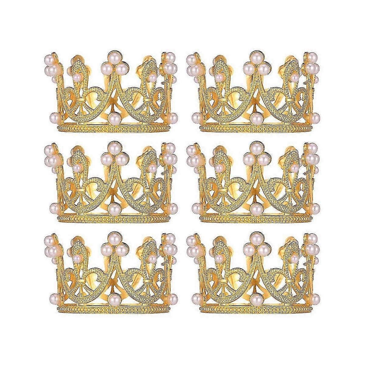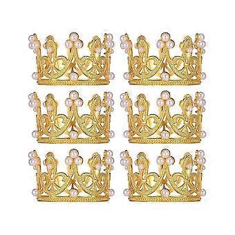 6pcs Gold Mini Crown Cake Topper Small Crystal Pearl Cupcake Toppers Small Cupcakes Crown For Weddi