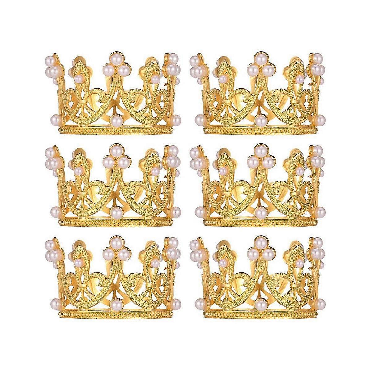 6Pcs Gold Mini Crown Cake Topper Small Crystal Pearl Cupcake Toppers Small Cupcakes Crown for Weddi