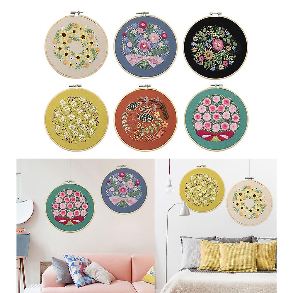 6pcs Chinese Pattern Embroidery Kit Cross Stitch Fabric Thread Needlework Kits