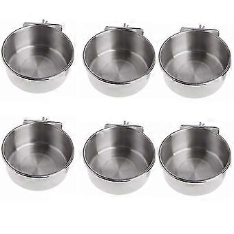 6 Pc Bird Feeding Tray Cup Stainless Steel Parrot Feeding Cup Animal Cage Water Food Bowl Cage Cup