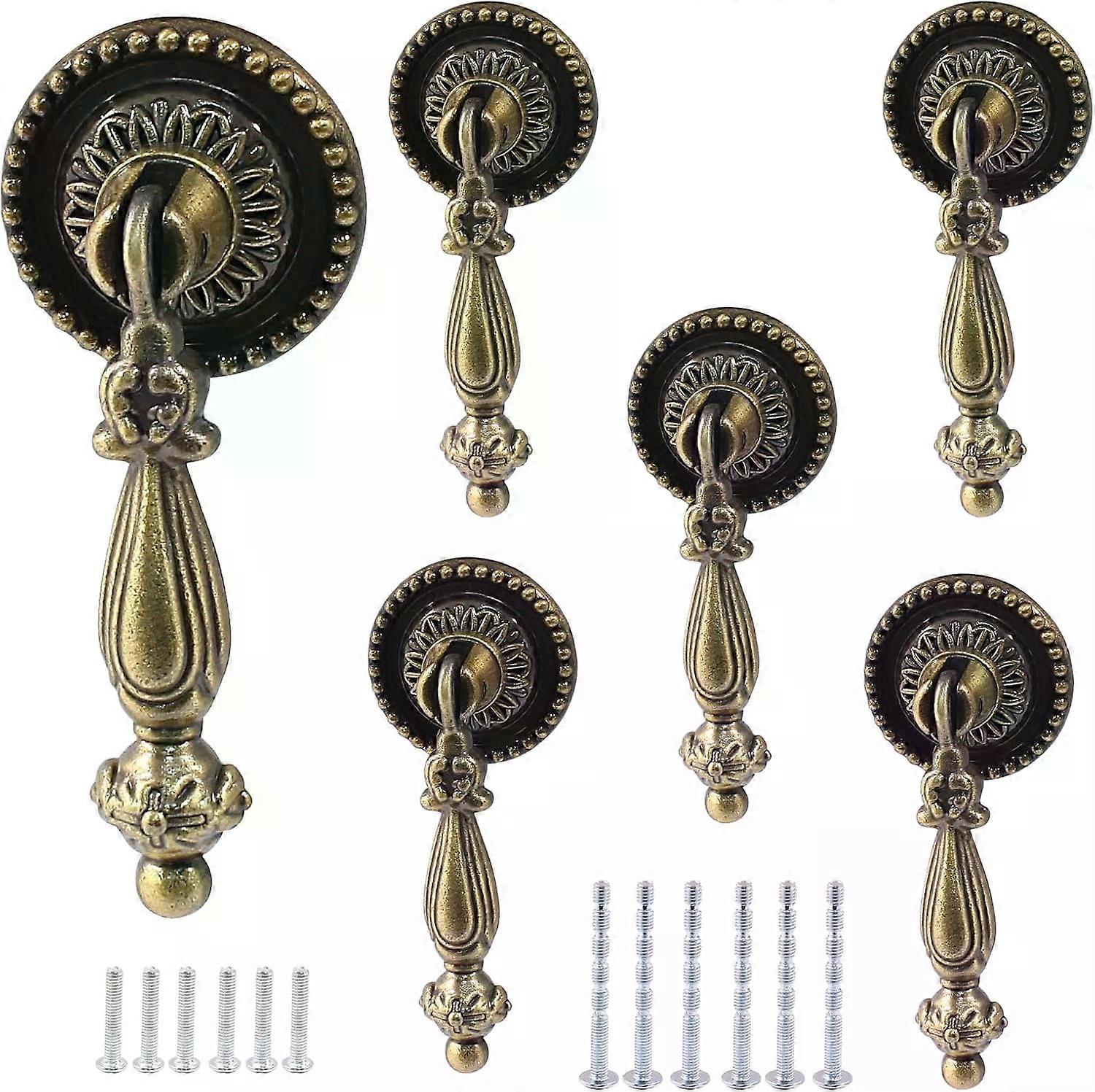 6PCS Antique Style Tear Drop Pulls, Vintage Cabinet Decorative Handle Knob