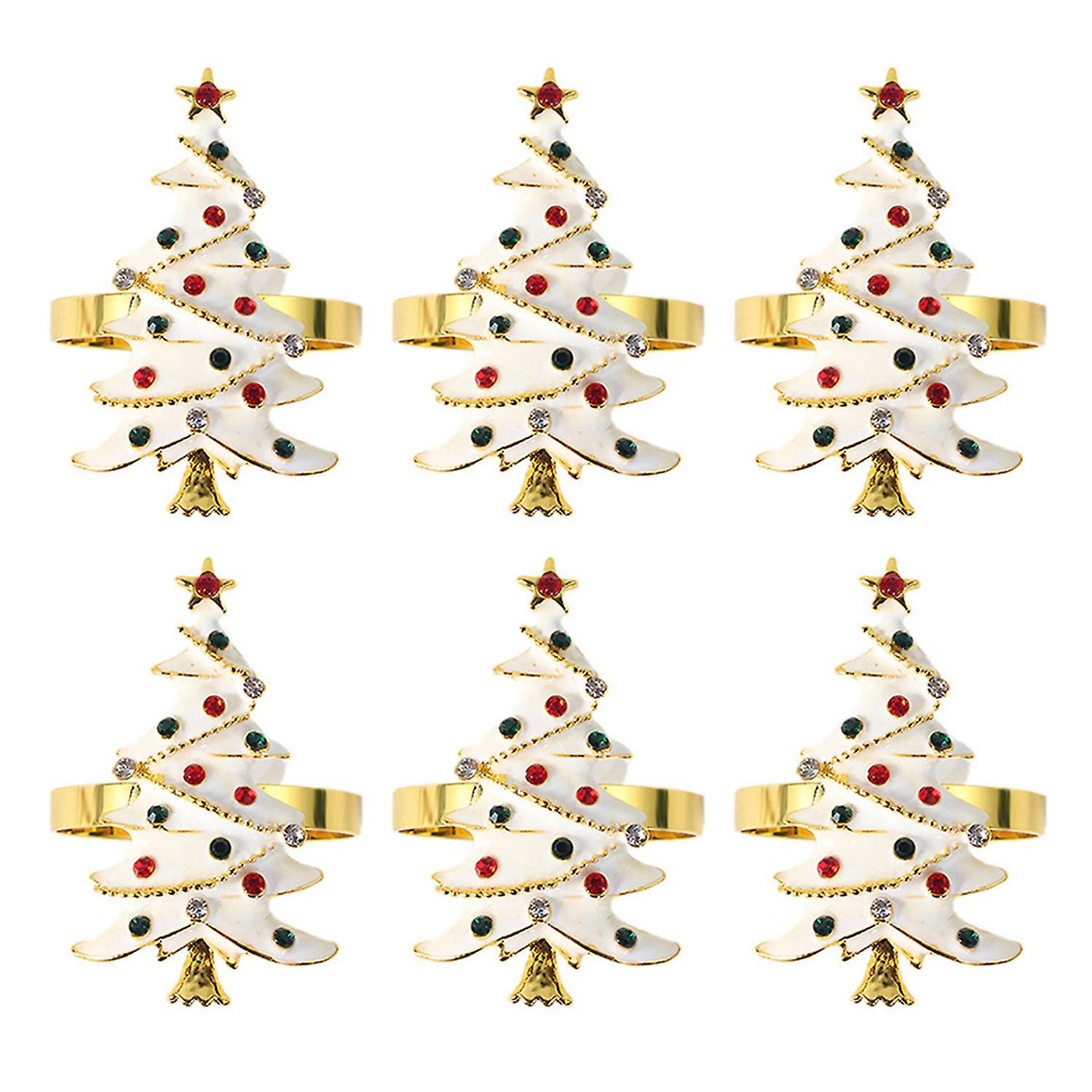 6Pcs Enamel Christmas Napkin Rings Elegant Xmas Tree Reindeer Snowflake Napkin Holders Christmas Wed