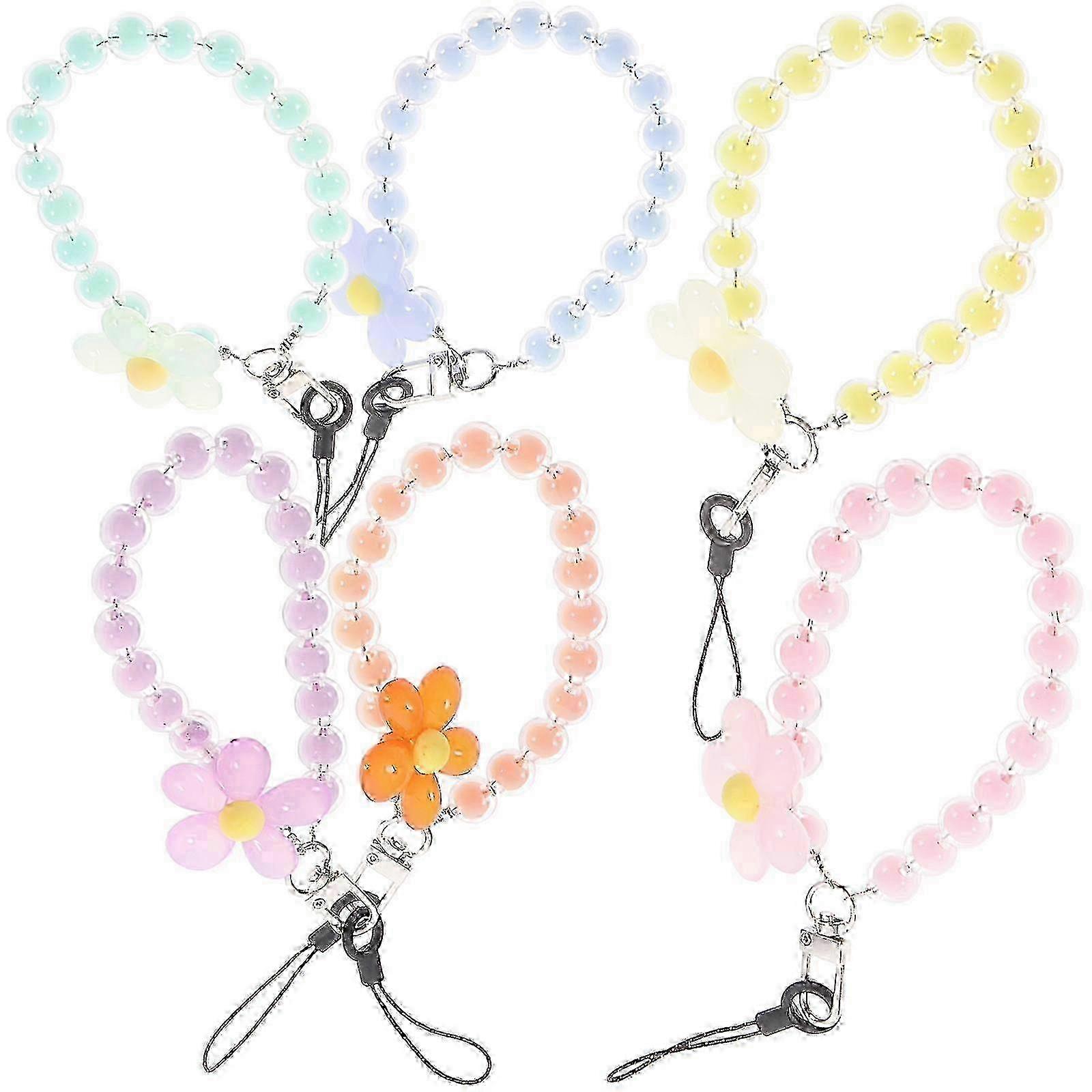 6pcs Phone Charm Beaded Phone Chain Cute Beaded Phone Lanyard Strap Keyring