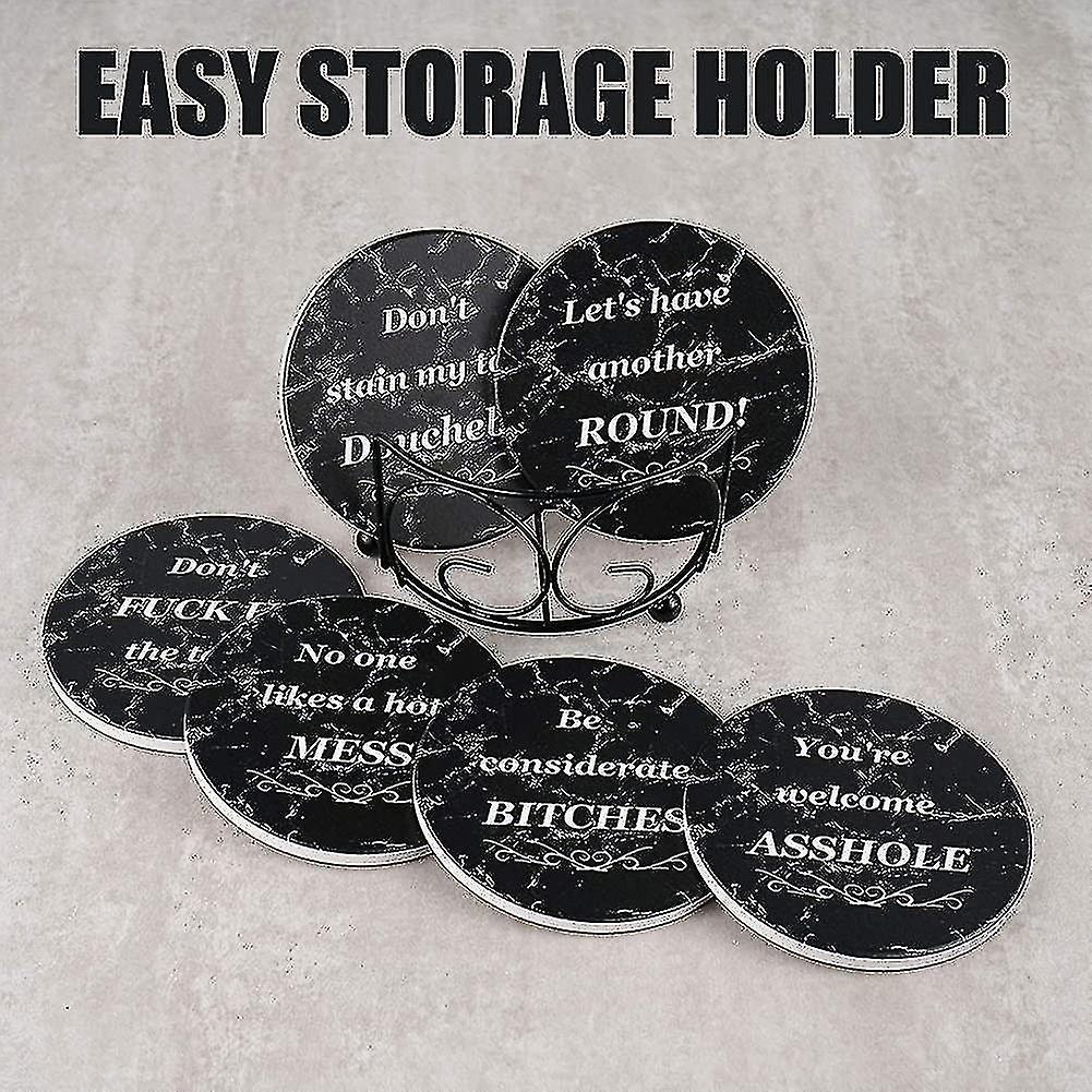6pcs Coasters For Drinks, Funny Drink Coasters Absorbent With Holder Absorbing