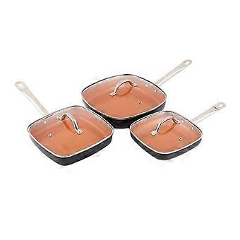 6 قطع أحواض قلي محمولة من الألومنيوم ذات لون نحاسي مع مقالي مربعة عملية بمقبض مريح للاستخدام المريح