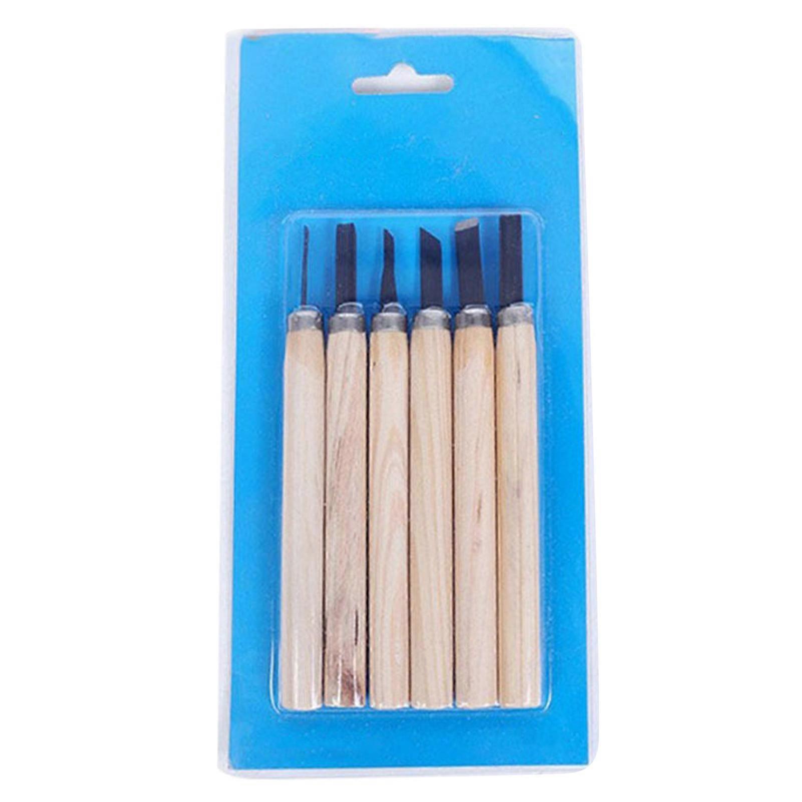 6 Pieces Wood Carving Tools 65 Manganese Steel Blade Wooden Handle Sculpting Set for Woodworking and DIY Handicrafts