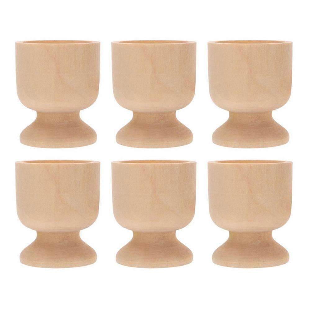 6pcs DIY Wooden Egg Cups for Easter, Graffiti Design, Food Grade Safe, Modern Decorative Stand for Breakfast, Preschool Crafts & Home Use
