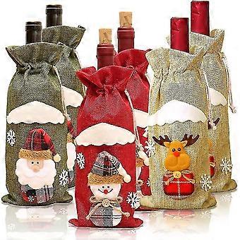 6 Pcs Christmas Bottle Bags With Christmas Pattern Wine Gift Bag Reusable Wine Gift Bags
